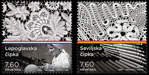 In recognition of the artistic and cultural values shared by Spain and Croatia, the postal services of both countries will circulate a joint issue dedicated to bobbin lace. The Croatian stamp will show lace from Lepoglava, and the Spanish stamp lace from Seville, both from the early 20th century. One special feature of this issue is that both stamps have perforations in the design, like real lace.